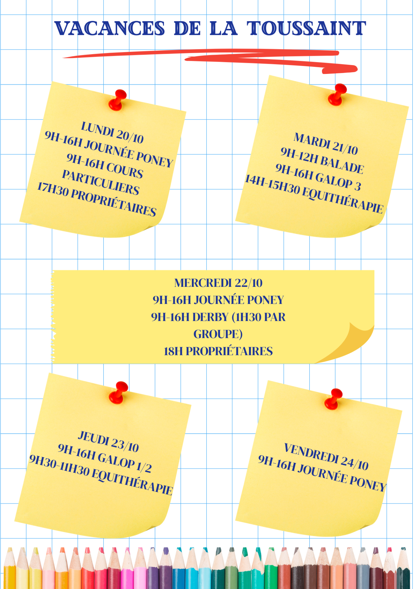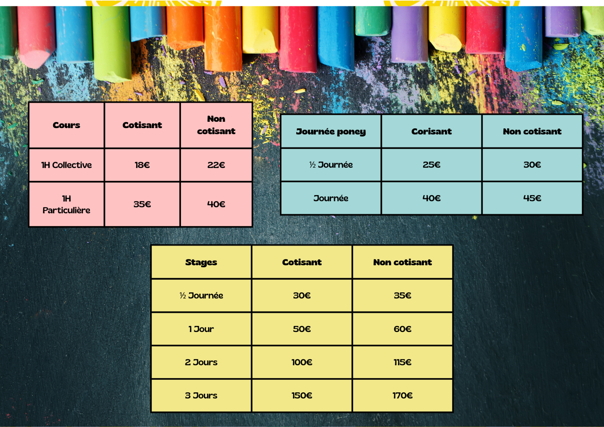 De l'initiation à de nouvelles disciplines (Hunter, Cross, Pony-Games, équitation naturelle, ...) au perfectionnement et passage des galops fédéraux, vous pourrez trouver votre bonheur!