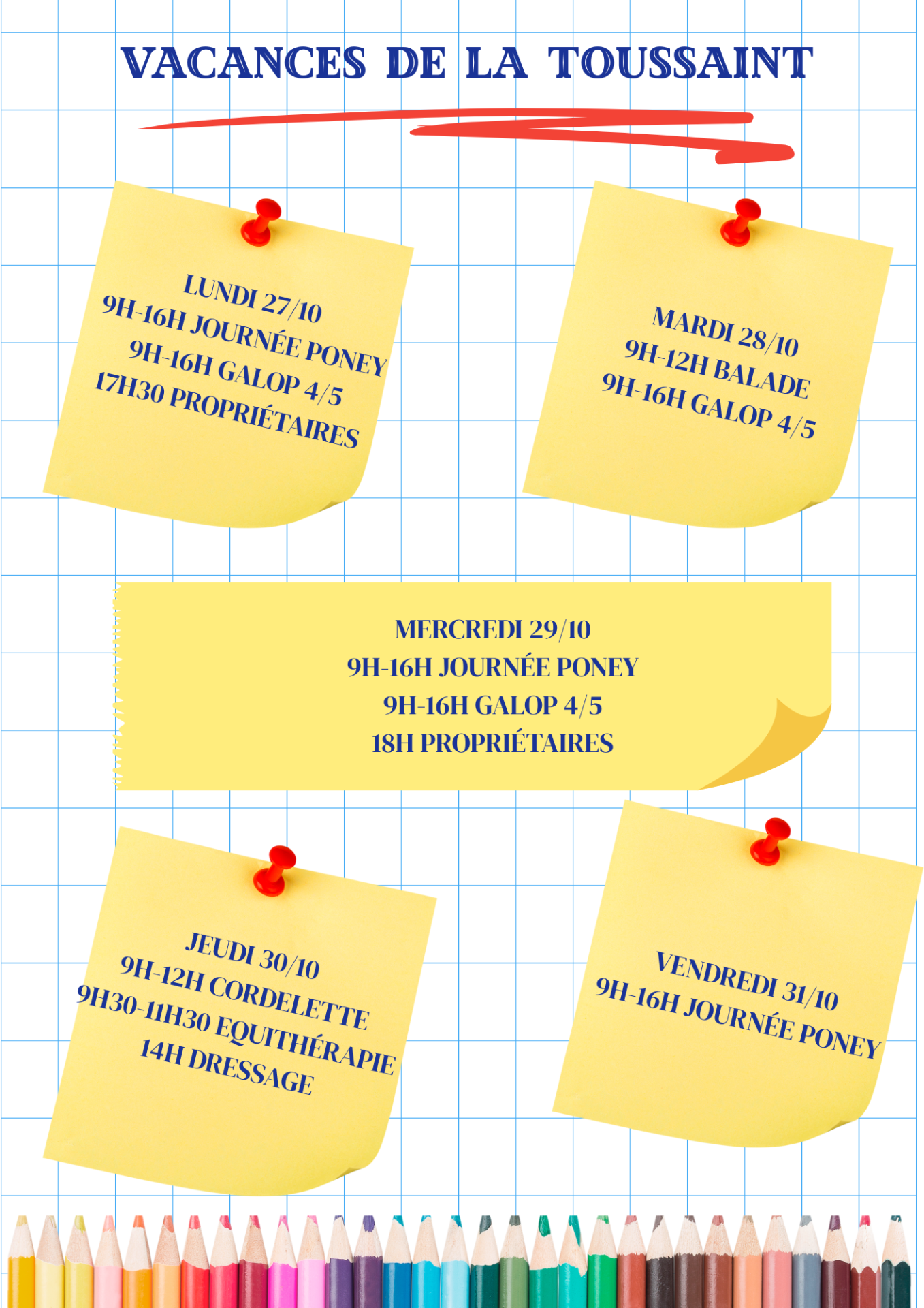 De l'initiation à de nouvelles disciplines (Hunter, Cross, Pony-Games, équitation naturelle, ...) au perfectionnement et passage des galops fédéraux, vous pourrez trouver votre bonheur!